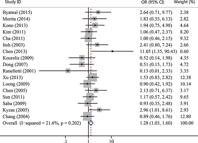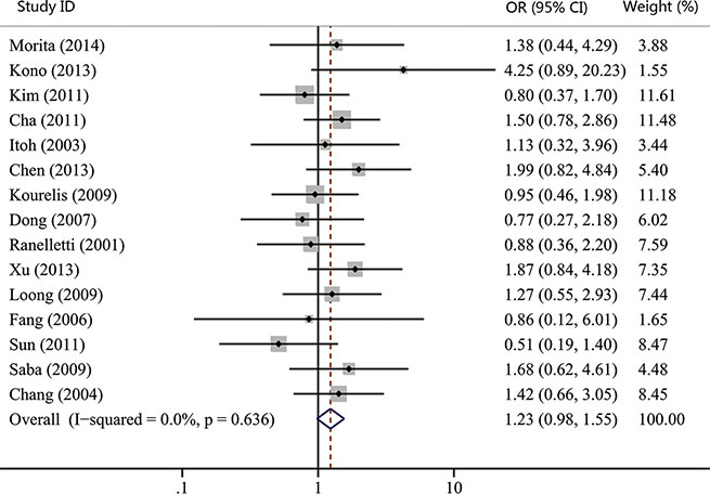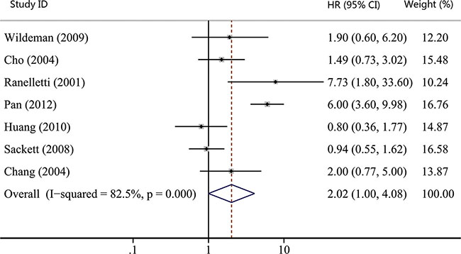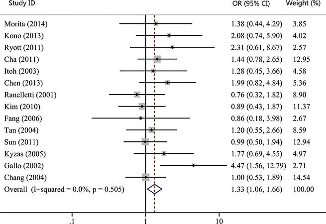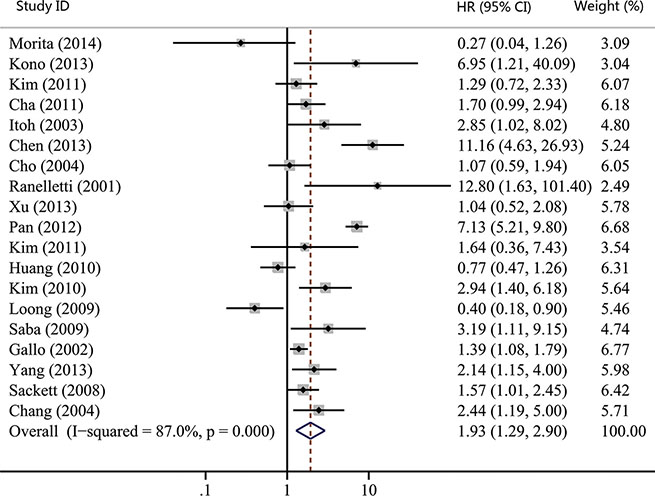 Studies were included in this meta-analysis if they met the following criteria: a) all patients recruited in the study were diagnosed with HNC; b) COX-2 expression was evaluated in primary tumor tissues; c) the clinicopathological or prognostic value of COX-2 expression was tested in the article; d) only English-language studies were included; e) the OR or HR and their corresponding 95% CIs were described or could be statistically extracted from the study; f) When several articles were from the same patient population, the newest or most informative single article was included.