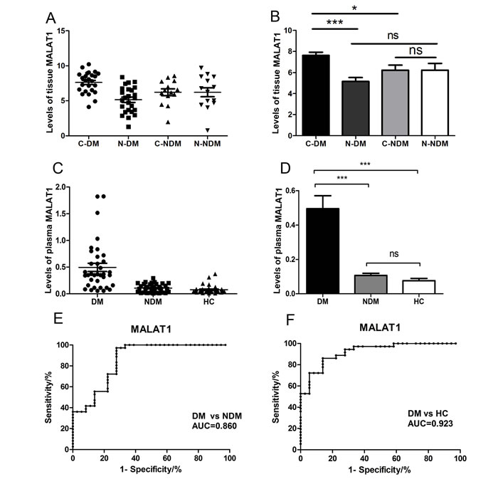 MALAT1 levels are up-regulated in GC/DM plasma and tissues