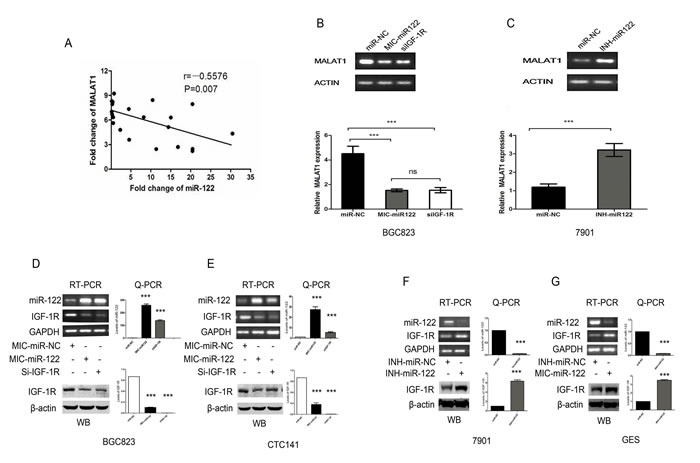 The miR-122-IGF-1R signaling correlated with the dysregulation of MALAT1 in gastric cancer cell.