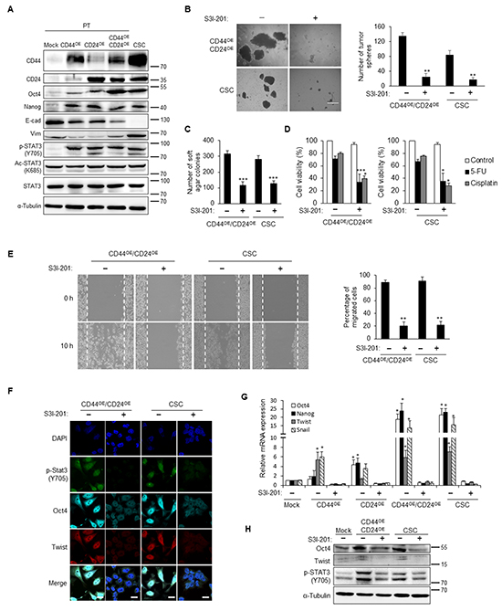 Inhibition of STAT3 phosphorylation impeded CSC properties conferred by CD44 and CD24 overexpression