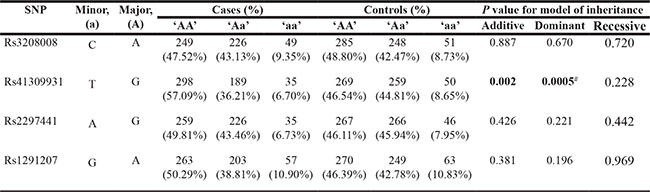 Rs2297441 cases n = 520, missing n = 11; controls n = 579, missing n = 13.