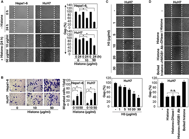 Histones induce HCC cell migration and invasion