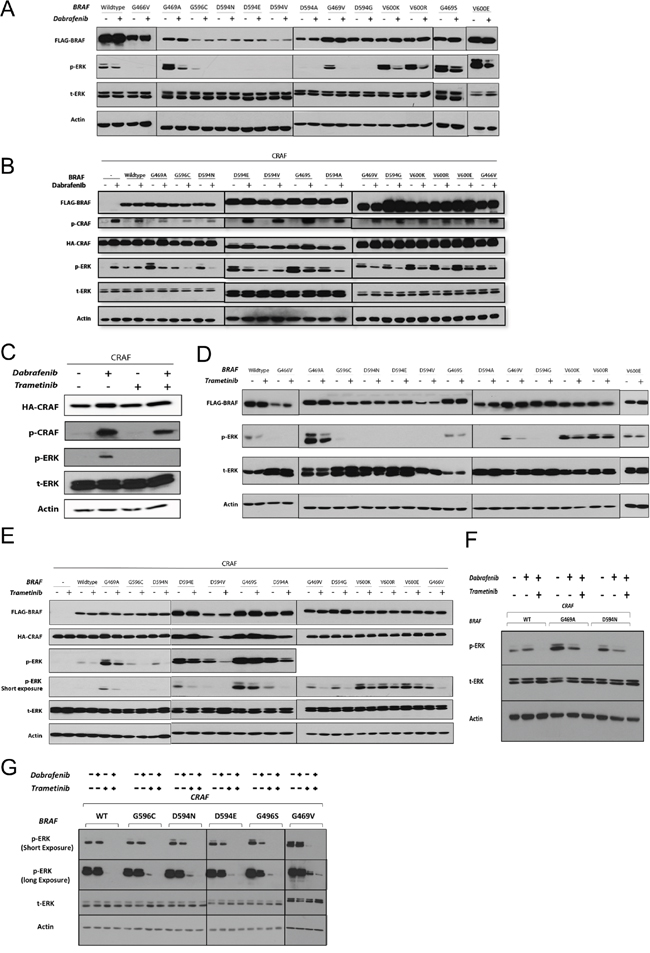 As ERK activation in both classes of non-V600 BRAF mutations is RAF and MEK dependent and cells harboring such mutations have been shown to be addicted to ERK activity [10–13], we hypothesized that these mutations confer sensitivity to combined RAF and MEK targeting.
