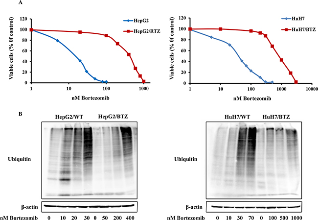 Acquired resistance to bortezomib in HepG2/BTZ and HuH7/BTZ cells
