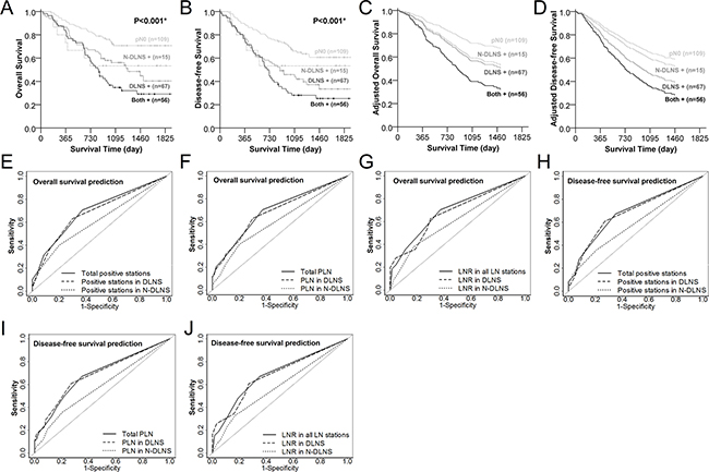 Therefore, we proposed that some LN stations should be merged according to their relative importance to their association with survival and considered as an entirety. Indexes which indicate LNM in DLNS, whether used alone or combined with indicators from N-DLNS, were verified for their prognostic values in predicting OS and DFS. However, those indicators from N-DLNS failed to predict prognosis. Moreover, the AUC of ROC confirmed the predominance of DLNS. Therefore, we concluded that the prognostic role of LNM is predominantly introduced by DLNS.