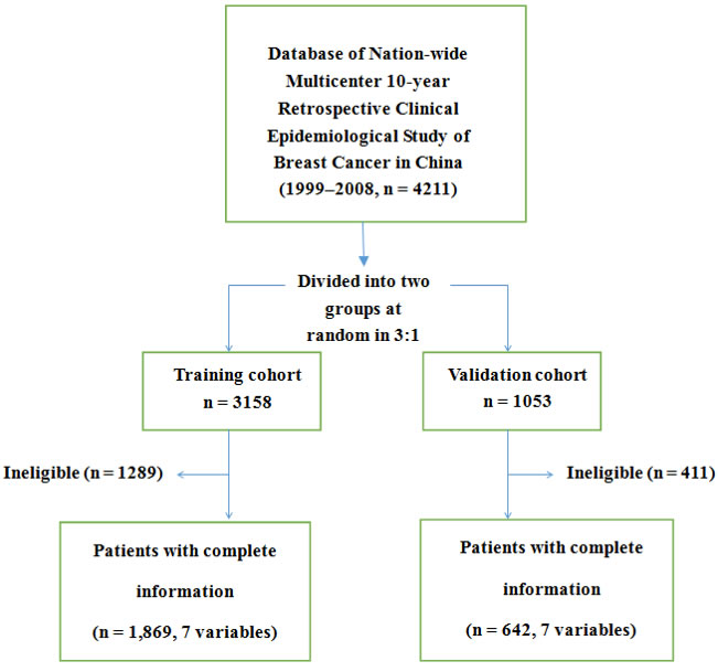 Data were obtained from the Nationwide Multicenter 10-year (1999-2008) Retrospective Clinical Epidemiological Study of Breast Cancer in China, led by Cancer Hospital/Institute, Chinese Academy of Medical Sciences (CICAMS) and jointly included seven Grade Three A hospitals nationwide.