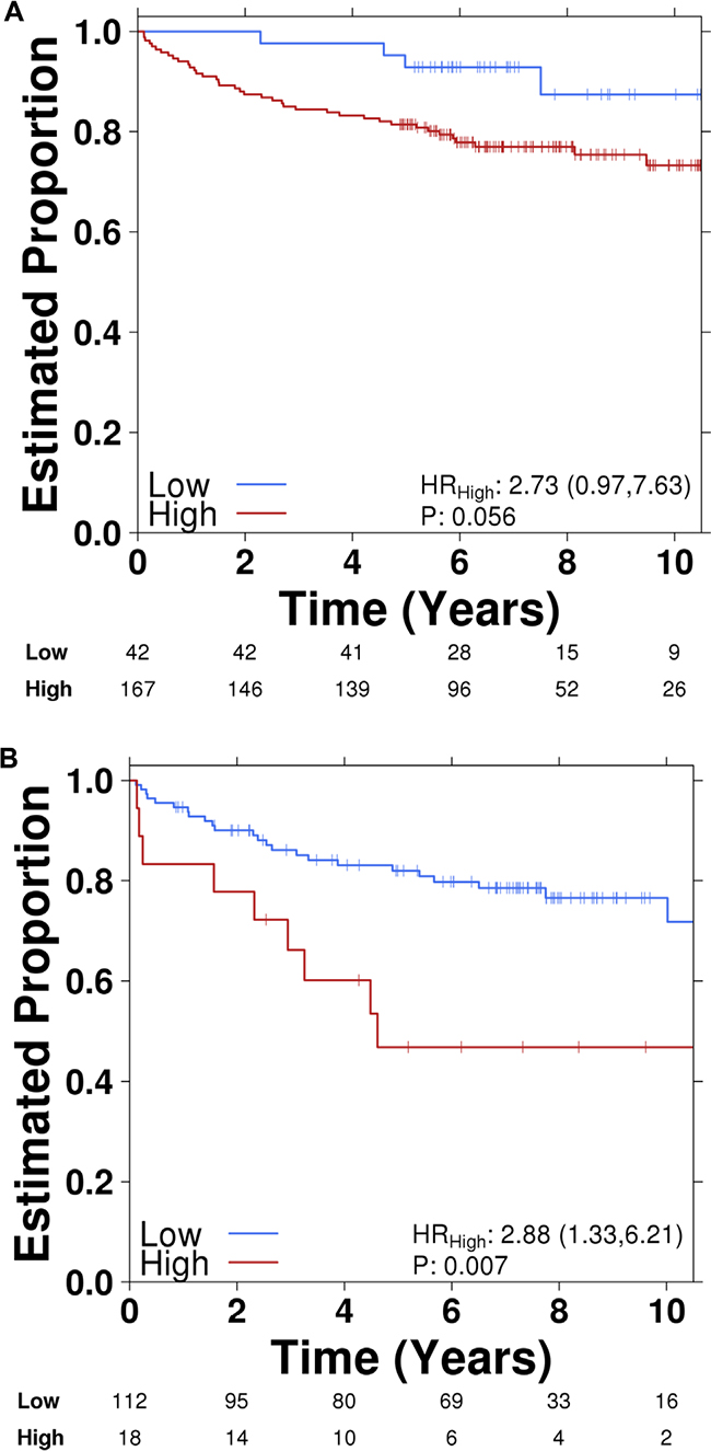 Using the Canadian Prostate Cancer Genome Network (CPC-GENE) dataset, 209 patients were dichotomized based on UCA1 mRNA abundances and a Cox proportional hazards model was then fit on the patient groups against biochemical recurrence (BCR). The proportional hazard assumption was tested using cox.zph function from survival package. To distinguish “high expression” from “low expression” values, UCA1 expression levels were dichotomized into low (lower 20%) and moderate to high (top 80%). Kaplan-Meier curves were generated based on the dichotomized patient groups. All survival analyses were conducted using survival package (v2.38-3) in the R statistical environment (v3.2.3). Data on 209 prostate adenocarcinoma [PRAD] samples including mRNA abundances, copy number variations, and associated clinical data were downloaded from The Cancer Genome Atlas (TCGA). For each covariate, UCA1 mRNA abundances were divided into the two groups, and a two tailed T-test was used to identify any associations. To determine if recurrent single nucleotide variants (SNV) were associated with UCA1 mRNA abundances, TCGA data were extracted and a T-test was performed using UCA1 abundances against each gene recurrently affected by SNVs. P-values were corrected using FDR. The publically available Memorial Sloan Kettering (MSKCC) Prostate Cancer database (http://cbio.mskcc.org/cancergenomics/prostate/) was interrogated for mRNA expression data on 130 patients with clinically staged localised low- to high-risk PCa who underwent radical prostatectomy [27].