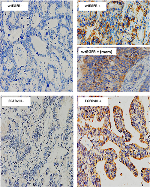 The relatively common expression of EGFRvIII (41%) was surprising but also an important finding in this study. Interestingly, in one patient we observed that while there was no detectable expression of EGFR in the primary tumour, the liver metastasis from the same patient was strongly positive for EGFRvIII expression (Data not shown). Arguably, while this observation was seen in only one patient, nevertheless it highlights an important fact that EGFR expression can alter between the primary site and distant metastatic lesions [31] and such mutations could contribute to secondary resistance to anti-EGFR mAbs therapy [40–42]. In addition, several clinical trials for vaccines targeting EGFRvIII in glioblastoma are currently underway [43]. In the first phase III immunotherapy trial (ACT IV study) with Rintega (rindopepimut) cancer vaccine, consisting of the unique 14 mer EGFRvIII peptide sequence conjugated to keyhole limpet hemocyanin, the unexpected strong performance of the control arm lead to the termination of this study although there are a subset of patients on the Rintega arm who did very well long term. It is currently unclear which factors lead to better performance in these patients. However, the high level of EGFRvIII reported in this study for patients with colorectal cancer suggest that such patients should also be included in future studies with EGFRvIII targeting vaccine.