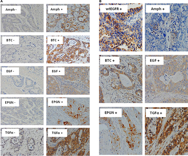 IHC staining was carried out as described previously [36], using the following primary antibodies: mouse anti-wild-type EGFR (M7298) and mouse anti-phospho-EGFR (Tyr 1173) (M7299) (Dako, UK), anti-EGFRvIII (BS-2558R, Bioss, USA), rabbit pAb anti-Amphiregulin (GTX100986, GeneTex, USA) rabbit anti-phospho-EGFR (Tyr 1068) (2234, New England Biolabs, UK), mouse anti-EGF (AHP767), mouse anti-TGFα (AHP284G) (Abd Serotec, UK), mouse anti-Betacellulin (MAB2611) (R&D Systems, UK), rabbit pAb anti-HBEGF (HPA053243), rabbit pAb anti-Epigen (HPA014420), and rabbit pAb anti-Epiregulin (HPA054373) (Sigma, UK).