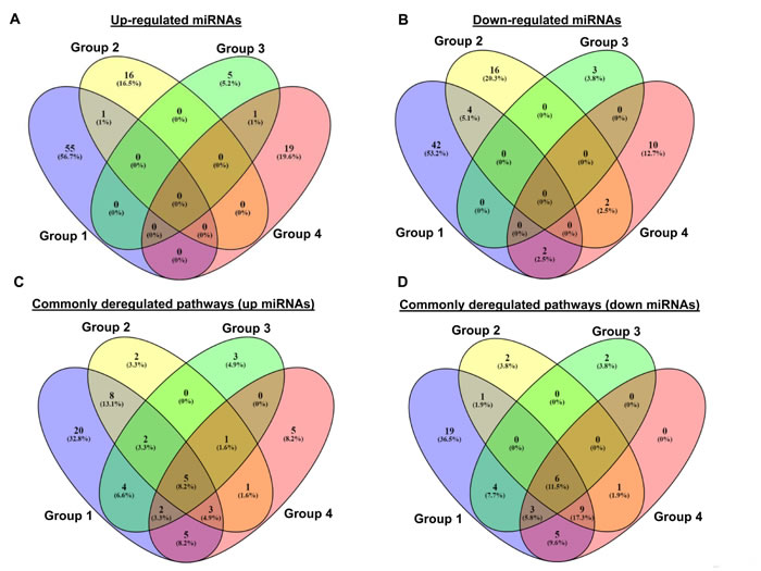 Table 2: Common deregulated pathways related to up or down-regulated microRNAs (Groups 1-4).