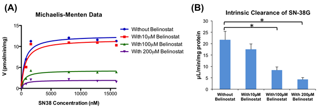 Effects of belinostat on SN-38 glucuronidation by UGT1A1