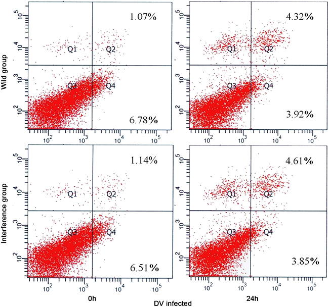 At 24h after DV infection, there was no significant difference between the interference group and the control group (showed in Figure 5). The result showed that the antiviral effect of P53 was activated by other pathways instead of the cell apoptosis.