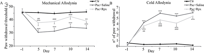 In vivo model: effect of reparixin in paclitaxel-induced mechanical and cold allodynia
