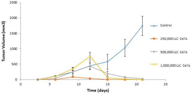 For induction of tumor growth, 5 × 105 B16, LLC, or 4 T1 cells, American Type Culture Collection (Manassas, VA) cells were injected subcutaneously into the hind limb flank. Four weekly vaccinations of 5 × 105 test cells were administered subcutaneously on the contralateral side to which tumors were administered. Vaccination was performed on the day of tumor inoculation and on days 7, 14, and 21.