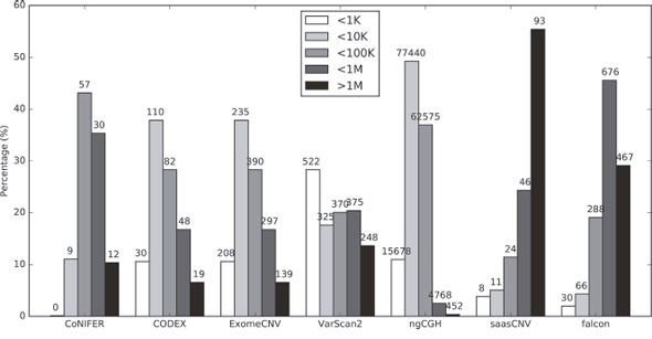 Estimated CNA segment sizes at the exon level differ among the algorithms