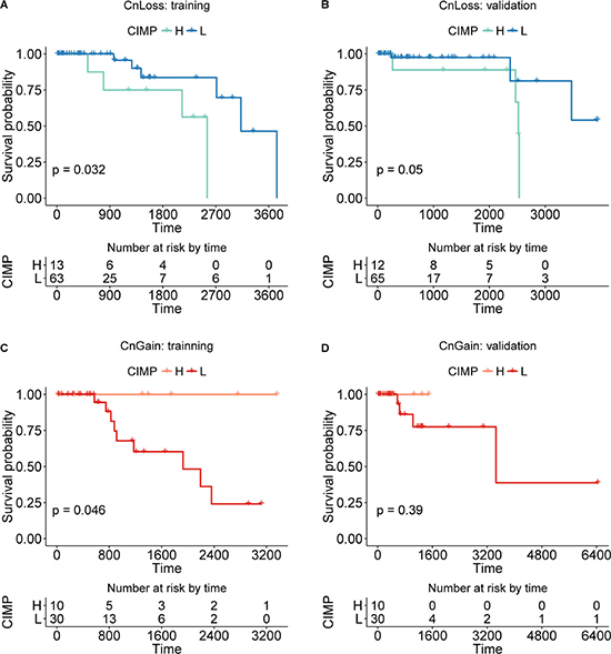 To integrate copy number and methylation alterations, and also to reduce the tumor heterogeneity in a more cost-efficient way, Feber et al. found and validated that Infinium HumanMethylation450 BeadChips (450K) had potentials to detect not only aberrant CpG methylation loci, but also regions with abnormal CNA [20]. In this study, we aimed to figure out the survival difference between CIMP-H and CIMP-L samples in different copy number status using the 450 k array data from the Cancer Genome Atlas (TCGA). Our study made a stratification of 765 samples according to hypermethylated genes with abnormal CNA which were picked out by our criteria. The survival analysis found that CIMP-L type had a better survival significantly in CnLoss but worse tendency in CnGain samples. The results may enable a more precise evaluation of CIMP and a broader sight into the molecular basis of CIMP related to the genomic changes caused by copy number changes.