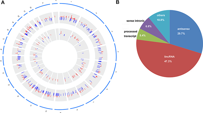 Mean ± standard deviation and independent-samples t-test were used in the statistical analysis. P < 0.05 was considered as significant difference. To group samples based on expression values of mRNA and lncRNAs, we performed hierarchical cluster analysis [40]. These analyses were performed by R platform (http://www.r-project.org/) [41]. Circos plot was described as the distribution of DElncRNAs and DEmRNAs in chromosomes.