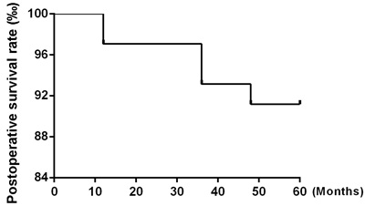 A study evaluated the post-curative treatment rates of locoregional recurrence associated with hyperfractioned radiation therapy, postoperative chemotherapy, or preoperative or postoperative multitechnique radiation therapy. The average rate of tumor recurrence associated with the above treatments was approximately 42% (range, 16% to 75%) at 2 to 5 years post-treatment [6]. Glicksman et al. [18] reported on the utility and superiority of concurrent chemoradiotherapy for advanced head-and-neck cancer. Their results showed that in 101 patients with potentially operable squamous cell carcinoma of the head and neck who received concurrent cisplatin-based chemotherapy and radiotherapy with or without surgery, 49% of patients survived disease free for up to 9 years post-treatment. These patients were followed up for a median of 41 months, and the progression-free survival rate was 78%. Additionally, 22 of the 101 (21.8%) patients enrolled in the study had tumor recurrence. The current methods used for the treatment of OSCC still present many problems, including significant toxicity and side effects. Moreover, these treatments are associated with high recurrence and poor survival rates. In contrast to the above results, our results showed that the overall response rate of primary tumors to chemoradiotherapy was 100% and that the 5-year overall survival rate was 91.35% (95/104) for all the patients enrolled in the study. These patients were followed up for a median of 57 months. Only 2 (1.92%) of 104 patients developed locally recurrent tumors after preoperative combined paclitaxel and nedaplatin chemotherapy and 3D-CRT followed by surgery. Our results also demonstrated that the preoperative regimen used in this study was well tolerated and enabled patients to avoid experiencing serious complications, as the regimen was associated with low toxicity, and no toxicity-related deaths occurred.