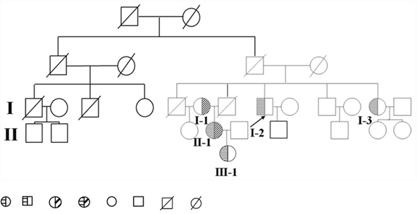 The proband, a 48-year-old Chinese male, was admitted to our hospital in 2014 for persistent elevation of glucose (fasting blood glucose at 12.25 mmol/L, HbA1c at 9.7%, ketone at 1+). After initial diagnosis with type 2 diabetes in 2007, he was prescribed with metformin and insulin Aspart-30 injections. However, the control of his blood glucose remained unideal over the years due to poor compliance in diet and exercise. During the latest admission, his plasma TG, TC and LDL-C were elevated to 23.97 mmol/L, 8.30 mmol/L and 5.64 mmol/L respectively (Table 1). Thyroid, liver and renal functions were within the normal range. Physical examination was unremarkable (BMI: 25 kg/m2) without significant signs of abdominal pain, hepatosplenomegaly, eruptive xanthoma and lipaemia retinalis. He reported recurrent episodes of acute pancreatitis for four times from 2002 to 2005 after alcohol intake or red meat consumption. His family history revealed the possible presence of hereditary hypertriglyceridemia with an autosomal recessive pattern (pedigree shown in Figure 9). Of note, his sister MXH (I-3) and niece MC (II-1) both presented with recurrent episodes of pancreatitis previously. MC developed pancreatitis since the age of seventeen, characterized by constant lipoprotein disturbance and poor response to lipid-lowering drugs (Fenofibrate and Chinese herbs). None of the family members had history of autoimmune disease, gallstones or drug abuse. The proband had a history of drinking liquor (up to 500 mL) and smoking cigarettes (up to 40) per day for thirty years.