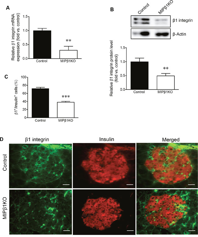 Characterization of β1 integrin expression in beta-cells of MIPβ1KO mice