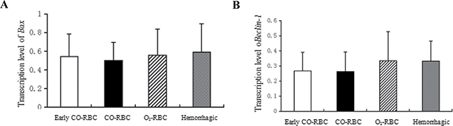 Moreover, our study found that the transcription level of Bax in CO-RBC resuscitation group was lower than O2-RBC resuscitation group, which was accordant with the cell apoptosis detection conducted on these three groups after resuscitation by Pedro et al. [6]. And the results indicated that COHb could inhibit cell apoptosis, but the mechanisms were poorly known.