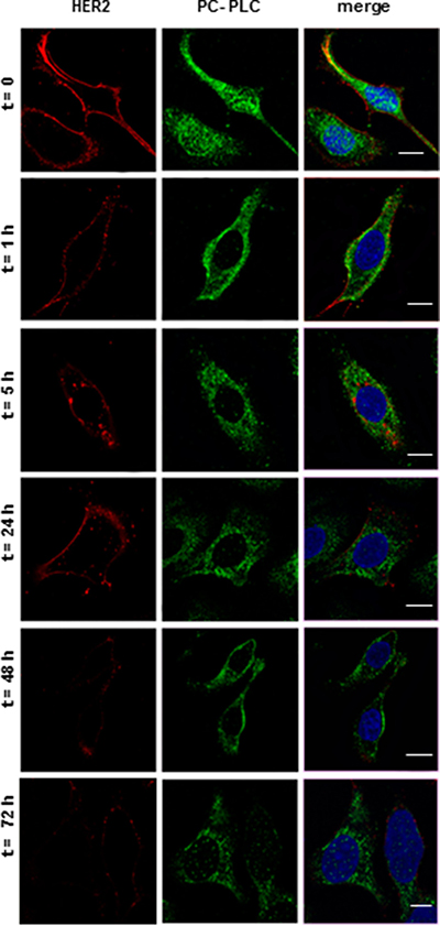 Internalization of HER2 and PC-PLC re-localization in SKOV3.ip cells exposed to D609