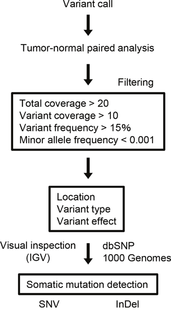 Figure 1: Data analysis pipeline. Workflow to identify somatic SNVs and InDels from the sequencing data.