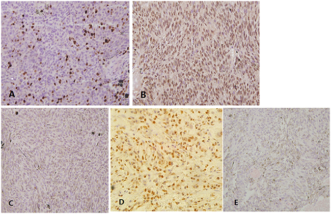 Statistical evaluation was performed using SPSS software (IBM SPSS Statistics 21; SPSS Inc., Chicago, IL). All data were described as mean ± standard deviation (SD) if applicable. The Pearson x2 test or Fisher’s exact test was used to compare qualitative variables. Associations and differences among the different parameters were analyzed using the Mann-Whitney U test and x2 test. The relation between the expression levels of EZH2 and Ki67 LI were performed by Pearson’s correlation coefficient. The Kaplan-Meier method and log-rank test were used for survival analyses. Cox proportional hazards regression model was used to calculate mortality hazard ratios and 95% confidence intervals (CIs). To control for confounding variables, we used multivariate Cox proportional hazards regression models. To assess independent association between EZH2 expression and key severity markers (epithelioid cells, mitosis count and Ki67 LI), multivariate logistic regression analysis was done and odds ratio (OR) was adjusted for age and gender. Probability values (P)<0.05 were considered to be statistically significant.