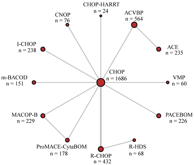 To conclude, ProMACE-CytaBOM and R-HDS were recommended for their desirable performance on survival outcomes and CR, respectively. While R-CHOP and I-CHOP served as alternatives for the benefits they invited to long-term and short-term survival outcomes. However, more comprehensive studies with larger sample size and safety analysis were still needed.