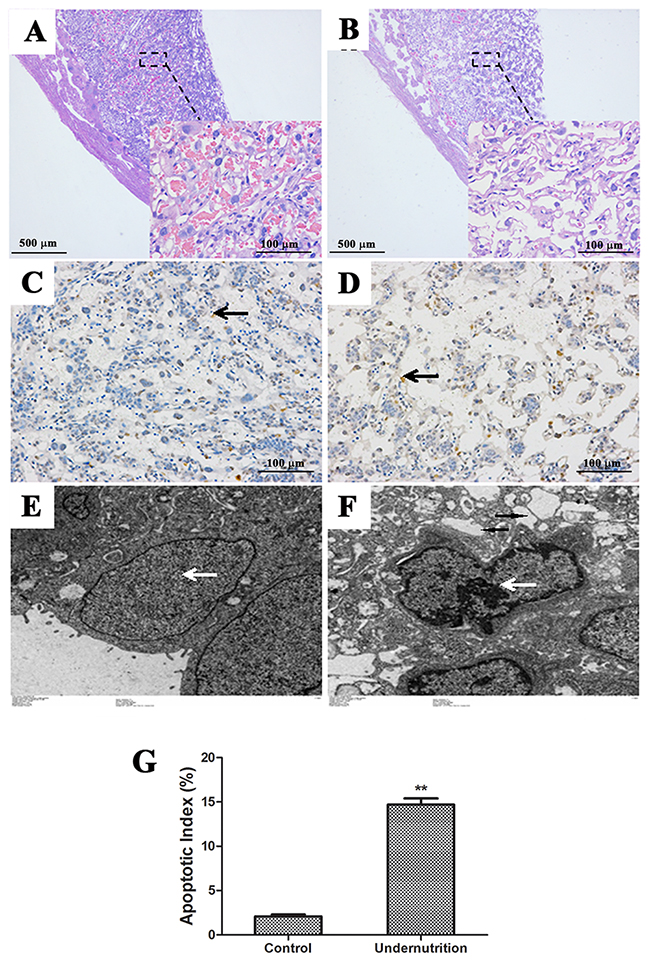Two female rats were mated with one male rat overnight after 7 days of acclimation. The day to observe vaginal smear with sperm cells was designated as GD0. Rats in the control group were allowed free access to standard chow and water, while rats in the undernutrition group were put on a restricted diet (50% food intake of the GD-matched control rats) from GD0. On GD14, pregnant rats were anesthetized with isoflurane and euthanized by decapitation. Maternal blood was collected in sodium citrate tubes. Fetuses and placentae were weighed after being dried on filter paper. IUGR was diagnosed when a fetal weight was two standard deviations lower than the mean body weight of control group [46]. IUGR rates were calculated by dividing the number of IUGR in each litter by the total pups of the litter. Three placentae in each group were randomly selected for fixing in 10% neutral formalin solution to make paraffin slices. Another three placentae in each group were randomly selected and immersed in 3% glutaraldehyde/1.5% paraformaldehyde solution for TEM analysis. The remaining placentae were stored at -80°C.