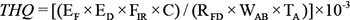 Target hazard quotient (abbreviated as THQ) was a kind of assessment method to evaluate the possible non-carcinogenic health risks due to chemical pollutants intake, and was established by the United States Environmental Protection Agency [52]. This method assumes the intake dose is equal to the absorb dose, and cooking has no effect on the pollutants [66]. THQ value less than 1 means there will be no obvious risk in consuming the study fish sample, in another words, the exposure level of the study element is less than the reference dose. The calculation equation is listed as following:
