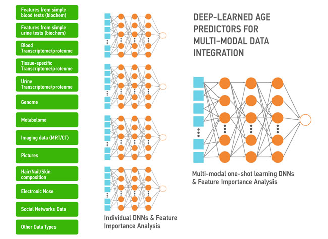 36. Putin E, Mamoshina P, Aliper A, Korzinkin M, Moskalev A, Kolosov A, Ostrovskiy A, Cantor C, Vijg J, Zhavoronkov A. Deep biomarkers of human aging: application of deep neural networks to biomarker development. Aging (Albany NY). 2016; 8:1021-33. https://doi.org/10.18632/aging.100968.