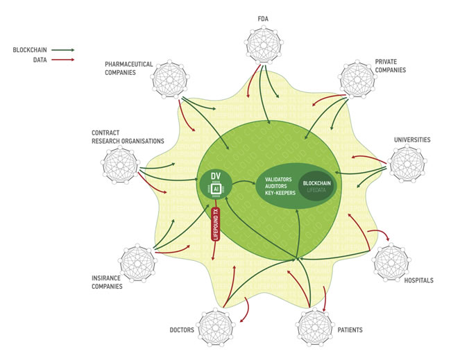 In this article we first review one of the recent achievements in next-generation artificial intelligence, deep learning, that holds the great promise as a biomedical research tool with many applications. We then discuss basic concepts of highly distributed storage systems (HDSS) as one of the advantageous solutions for data storage, introduce the open-source blockchain framework Exonum and review the application of blockchain for healthcare marketplace. For the first time we introduce half-life period of analysis significance, models of data value for single and group of users and cost of buying data in the context of biomedical applications. WHere we also present a blockchain-based platform for empowering patients to ensure that they havetake a control over their personal data, manage the access priviledges and to protect their data privacy, as well to allow patients to benefit from their data receiving a crypto tokesscurrency as a reward for their data or for healthy behaviorand to contribute to the overall biomedical progress. We speculate that such systems may be used by the governments on the national scale to increase participation of the general public in preventative medicine and even provide the universal basic income to the their citizens willing to participate in such programs that will greatly decrease the burden of disease on the healthcare systems. Finally, we cover important aspects of data quality control using the recent advances in deep learning and other machine learning methods.