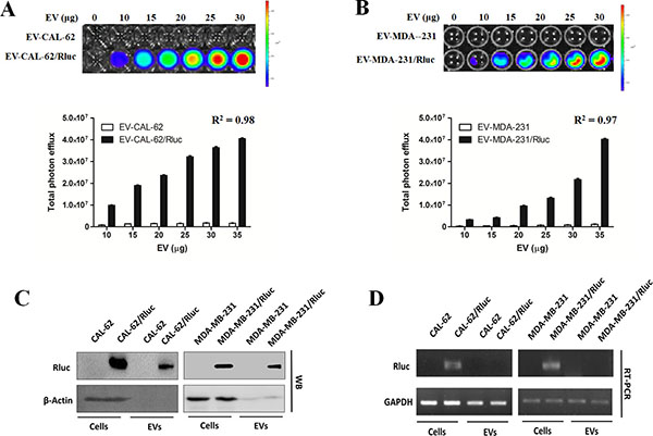 EV-CAL-62/Rluc and EV-MDA-231/Rluc showed EV-specific Rluc activity in vitro