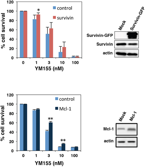 Effect of ectopic expression of survivin or Mcl-1 on YM155-induced cell death