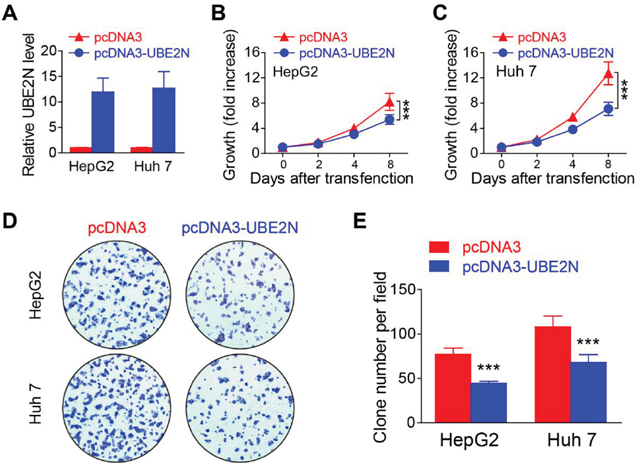 Overexpression of UBE2N suppressing HCC cell proliferation