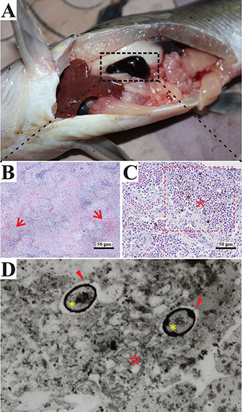 Histopathological and transmission electron microscopy analyses of diseased fish infected with S. iniae DX09