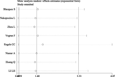 Figure 4: Sensitivity analysis of OS. Sensitivity analyses showed that removing the article of Engels CC et al, altered the results.