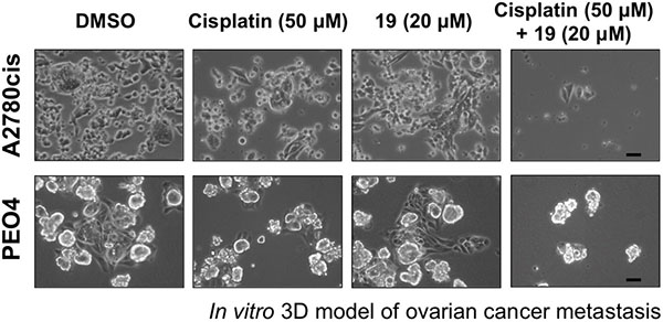 Compound 19 enhances cisplatin-induced apoptosis in ovarian cancer spheroids