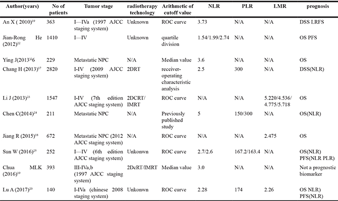Table 5: Published studies of the inflammatory markers in NPC