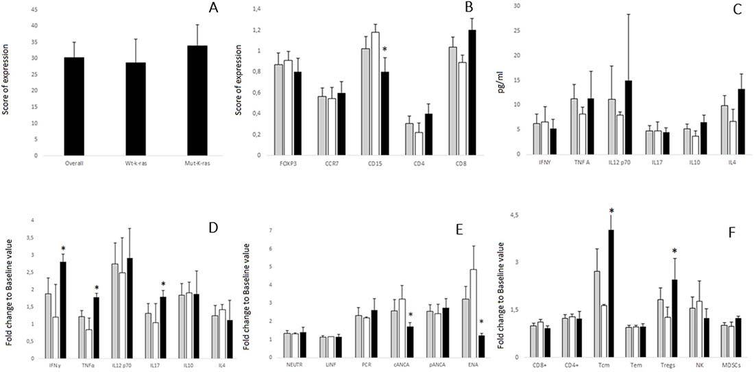 On these bases, we can conclude that the outcome of mCRC patients vaccinated with TSPP may be greatly hampered by their systemic inflammatory profile and by an altered k-ras pathway. This finding deserves further studies and must be taken into account in the design of future studies aimed to evaluate the antitumor activity of immunological strategies like TSPP vaccine in mCRC patients.