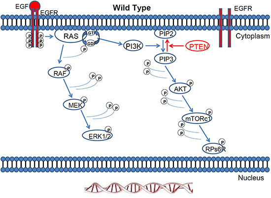 The RAS/RAF/MEK/MAPK signalling pathway downstream of EGFR plays a significant role in tumourigenesis.