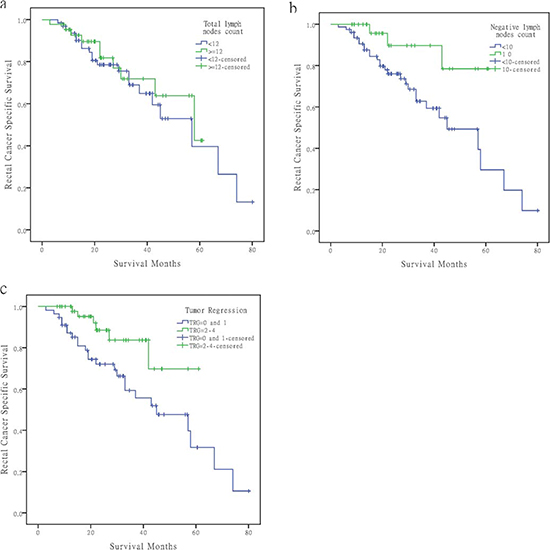 The FDSCC rectal cancer dataset was built prospectively and recorded the rectal cancer patients treated at FDSCC, Shanghai, China since January, 2006. To validate the findings from the SEER database and to clarify relevant issues, we used data from the FDSCC treated with NCRT between January 2006 and December 2012. All patients had histologically confirmed, locally advanced rectal cancer located within 10 cm of the anal verge. Other patient inclusion criteria were: rectal cancer as a single primary tumor, completed NCRT and received radical surgery, and pathologic yp-stage III. Patients that received local resection were excluded from this study. All patients received intensity-modulated radiation therapy to the pelvis of 45–50 Gy and a concomitant boost of 5 Gy to the primary tumor in 25 fractions, concurrent with capecitabine or 5-FU based chemotherapy. Radical surgery was scheduled 6-8 weeks after NCRT. Regression of the primary tumor was semi-quantitatively determined by the amount of viable tumor versus the amount of fibrosis, ranging from no evidence of any treatment effect to a complete response with no viable tumor identified, as described by Dworak et al [41]. The following were characteristics of each grade: grade 0, no regression; grade 1, minor regression (dominant tumor mass with obvious fibrosis in 25% or less of the tumor mass); grade 2, moderate regression (dominant tumor mass with obvious fibrosis in 26% to 50% of the tumor mass); grade 3, good regression (dominant fibrosis outgrowing the tumor mass; i.e., more than 50% tumor regression); and grade 4, total regression (no viable tumor cells, only fibrotic mass) [9].