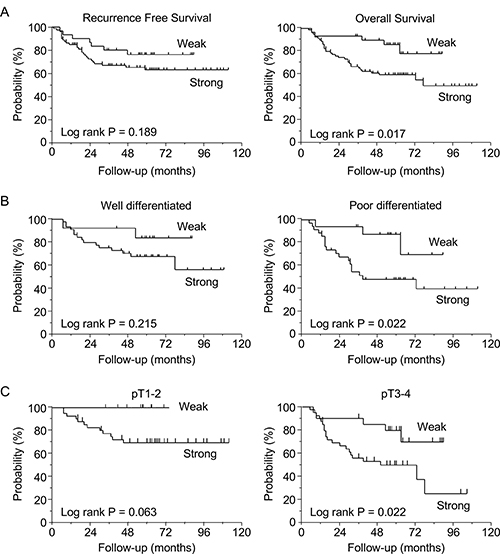 Patients with strong LSR expression showed significantly poorer prognoses