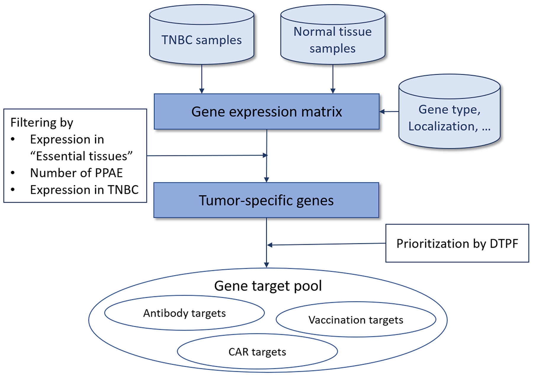 Although the approach described here is focused on triple-negative breast cancer, with some modifications it can be used for different cancer types. As it is designed as parameterizable framework, adaptions on the expression level of “essential" tissues, the number of predicted potential adverse events (PPAEs) or the tissue weights for the digital target prioritization factor (DTPF) can easily be applied.