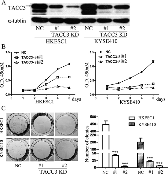 Knockdown of TACC3 suppresses the proliferation and clonogenicity of ESCC cells