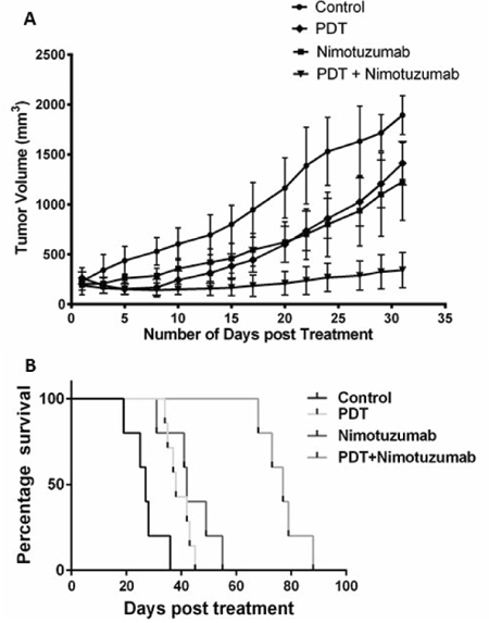 PDT and nimotuzumab delays in-vivo tumor growth and survival rate