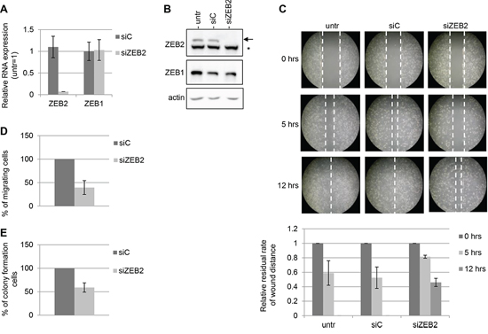Since it is well recognized that EMT is involved in cell migratory capacity in different carcinomas [4], we explored the role of ZEB2 in this specific context.