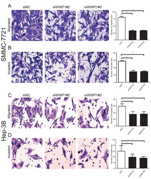 WWP1 silencing suppressed migration and invasion in HCC cells in vitro