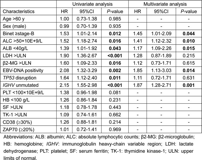 Table 4: Univariate and multivariate Cox regression analysis of OS for CLL